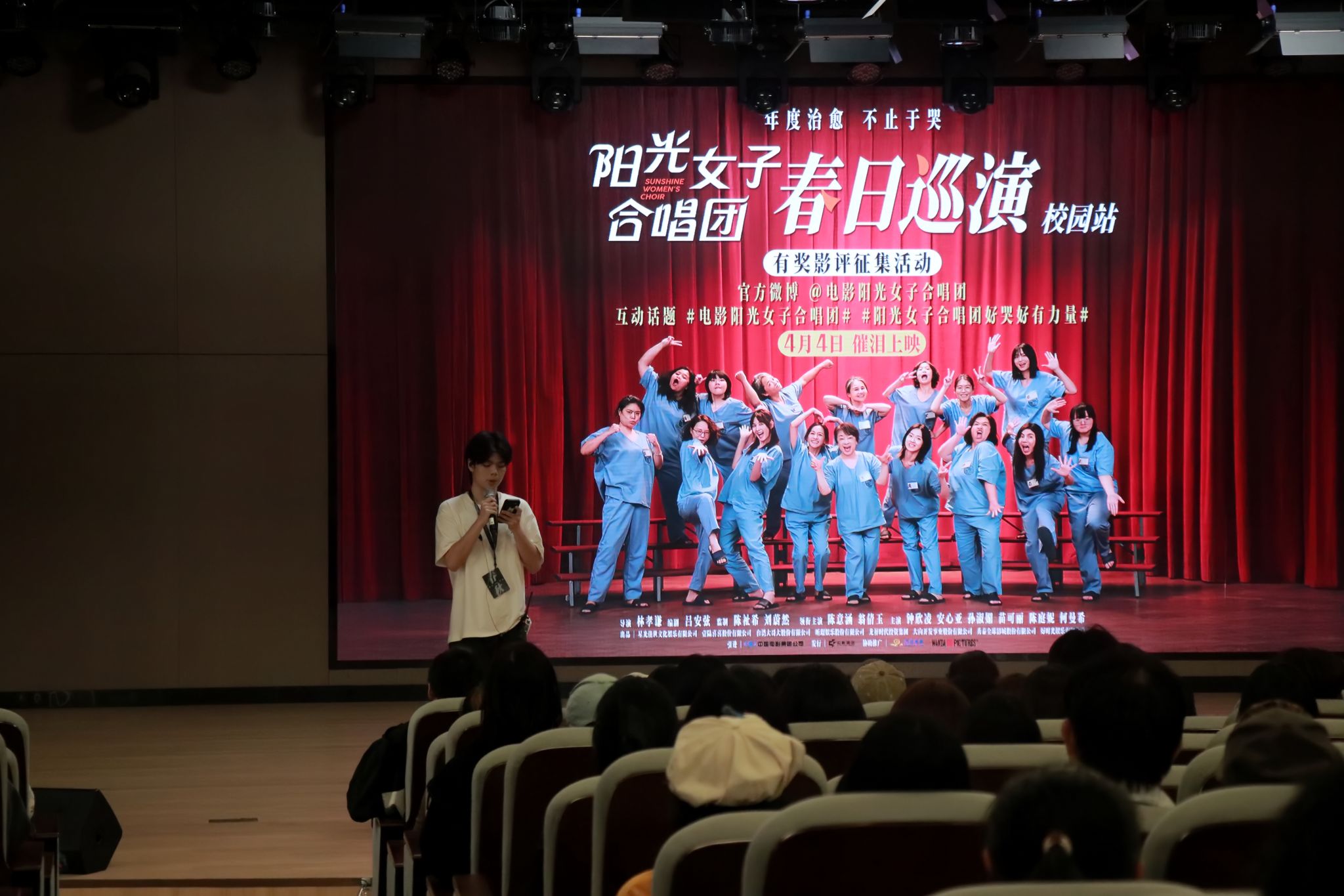 (通讯员 夏春秋)4月2日晚,电影《阳光女子合唱团》“春日巡演”活动在武汉传媒学院大悟校区小剧场顺利落幕。本次校园影视交流活动由电影与电视学院承办、春秋创意策划工作室执行,以光影为媒、以歌声为韵,为现场师生呈现了一场温暖治愈的艺术盛宴。